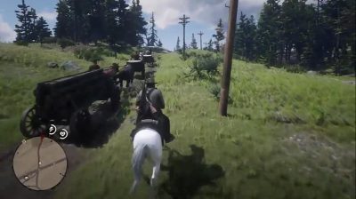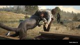 V hre Red Dead Redemption 2, Pes, ktorý sa zastavil uprostred cesty, aby potreboval dopravnú zápchu.