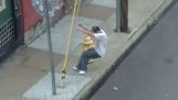 Dievča vydáva veľa balónov v blízkosti napájacích káblov.