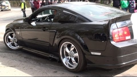 Vodič Ford Mustang sa snaží urobiť obrázok s výpalky, ale skončí Odťahová vozidla spojka.