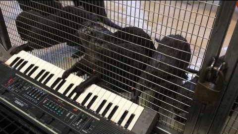 Vydry prejaviť svoj talent v hudbe, hrá klávesy, Smithsonian Zoological Park vo Washingtone.