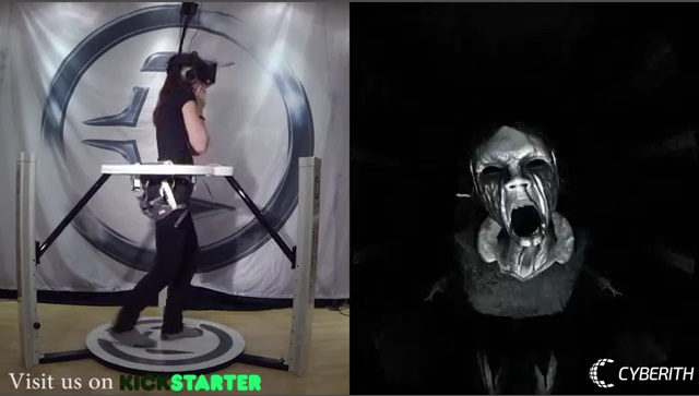 Prilba virtuálnu realitu Oculus Rift a Cyberith pohyb prístroja Virtualizer, na horor hra 'Postihnuté'.