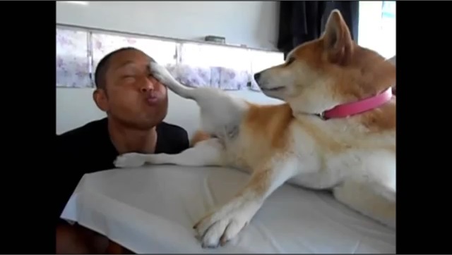 Mari, psa plemena Shiba Inu z Japonska, nepáči sa mi najmä jeho šéf. – Mari je v skutočnosti veľmi dobre vycvičený pes a dobrovoľne sa zúčastňuje týchto veľmi zábavných malých scénok.