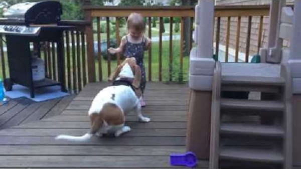 Zoe, Nedávno prijatý pes, hrať spolu so svojím milovaným mužom, malý Charlotte.