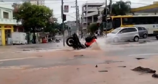 Nič netušiaci motocyklista v Sao Paulo Brazília, spadol v pondelok 26. januára do obrovskej mláky. V súlade so zásadami, porušil hlavného vodovodného potrubia v San Miguel Avenue, a cesta bola zaplavená, bez veľkej diery je viditeľné. Našťastie, bol zranený motocyklista, ale motocykel bol úplne ponorené a žeriav musel vytiahnuť z otvoru močaristá.