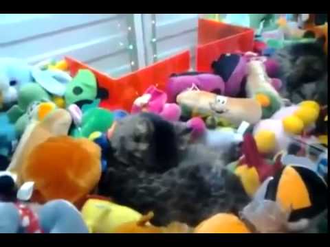 Rusi sa snažiť vyhrať mačka v arcade pazúr stroj