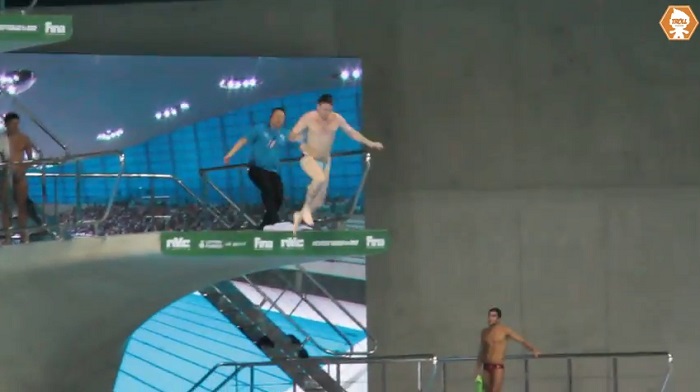 V nedeľu 3. mája 2015 a počas majstrovstiev sveta FINA World Series v potápaní, ktoré sa konali v Londýne, Vtipálci Dan Jarvis vylezie na platformu, aby sa splash. Prichádzajúce z tribúny pri prechode stráže a ide po schodoch, výstup na 10 metrovú tyč. V súťaži bolo odložené na nejakú dobu, I keď Dan bol potrestaný pokutou 90 libier (okolo 120 eur).