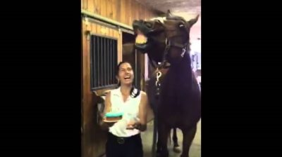 V Ithiliensto stánku v New Jersey v SPOJENÝCH štátoch, kôň má narodeniny JD. Pri príležitosti, jeho opatrovatelia mu urobili narodeninovú tortu a zaspievali mu „Happy Birthday“. Na prekvapenie sa kôň sfúknuť sviečky, ale najviac zábavy je potom robia grimasy. Je veľmi šťastný!