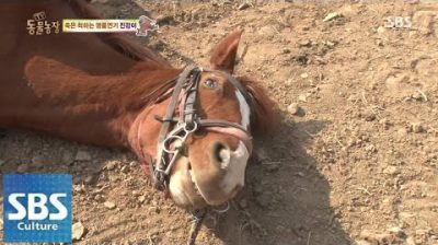 Jedinečný prípad v Južnej Kórei kôň, ktorý ľahne zakaždým, keď niekto sa snaží využiť do práce.