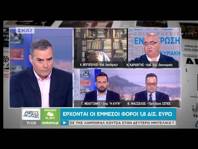 Ekonómie, profesor Costas Vergopoulos zaspí v priamom prenose, na výstave 'víkend s akciou na SKAI TV.