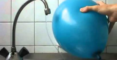Účinkom statického ilektrismenoy balón v prietoku vody.