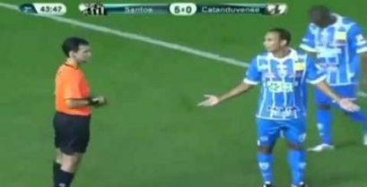 Brazílskeho šampionátu zápasu medzi Santos a Catanduvense, Neymara prekonáva súperovu personál s magické driblovanie.
