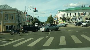 Motocyklista v meste Zaleski, Rusko Pereslabl, zrazí s prechádzajúcich áut a pozemky na hornej strane. Scéna sa podobal akrobatického kaskadér na film, Kým jazdec zázrakom nebol zranený.