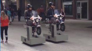 Dvaja policajti na motocykloch sa objavila podivná do centra pešej Esch-sur-Alzette, Luxembursko.