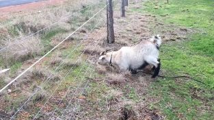 Kozie blížiace sa príliš blízko a krátko dotýka elektrický plot.