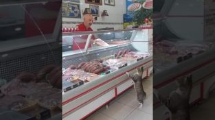V mäsiar v Turecku, zatúlaný mačka príde do obchodu a stojí vzpriamene pred oknom s mäsom. Mäsiar jej potom majú malý maškrtu.