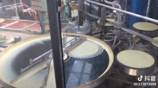 Tento čínsky stroj vyrába palacinky na výrobnej linke. V kruhovom panvici, otáčajúce sa lopatky, aby cesto z tuby, zatiaľ čo rozšírenie v jednej zo šiestich rotujúcich kotúčov. Dosky boli zahrievané [...]