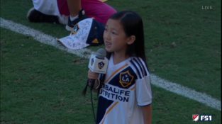 Pred zápasom medzi LA Galaxy a Seattle Sounders, 7chroni MALE Emma spievať americkú hymnu. Zlatan schválený.