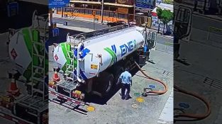 Tanker vodič v Čile, Zabudol ťahať brzdu vozíka pri plnení palivovú nádrž.