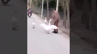 Starší v Číne sa snaží odraziť hus zaútočil s veľkou vytrvalosťou.