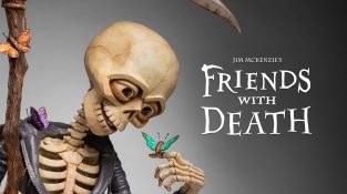 Americký umelec Jim McKenzie otočil pekný stop-motion videá, keď vytvoril svoju sochu „Friends With Death“. Socha líči smrtka čelia motýľ sedel na operadle.