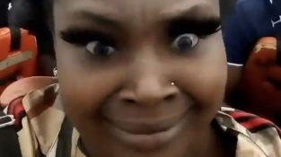 Počas jazdu motorovým člnom, žena nemohla ovládať viečka vplyvom veľkých umelých rias. Vietor fúka cez očné viečka a blikajú oči nekontrolovateľne.