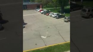 Muž hádže veľkú fľašu Coca-Cola z okna budovy dúfajú, že sa otvorí a stúpala. Spočiatku fľašu zasiahne zem, ale nielen hopsa, a 'diváci' sú sklamaní. druhá rana [...]