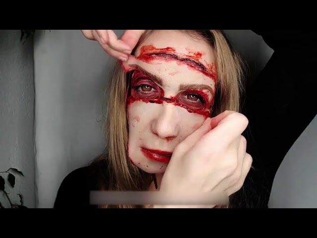 Шминкер из Берлина, Немачка користи маску од латекса да створи ефекат љуштеног особе. Када је лажни човек оставља, описује реалистичне Цртеж мишиће и зубе.
