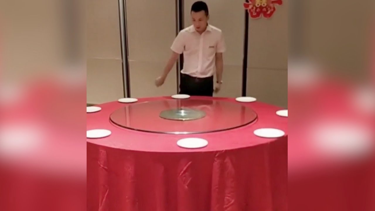 Тјаншуи град у Кини, радник Хотел показује технику која се брзо припрема табелу. Ставља стакло јело и на њој су јела. Onda, брзо окретање стаклену плочу, а плоче су исправно постављена у табели због центрифугалне силе.