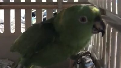 Превоз сандук, да Ницо папагај имитира плач бебе како би свог шефа да га милује. Марк Розентал, власник Анимал Ресцуе Центра Анимал Магиц, објашњава да Нико чини ову имитацију сваки дан и пролазници мисле да беба плаче у кавезу. свака мора објаснити да је папагај.