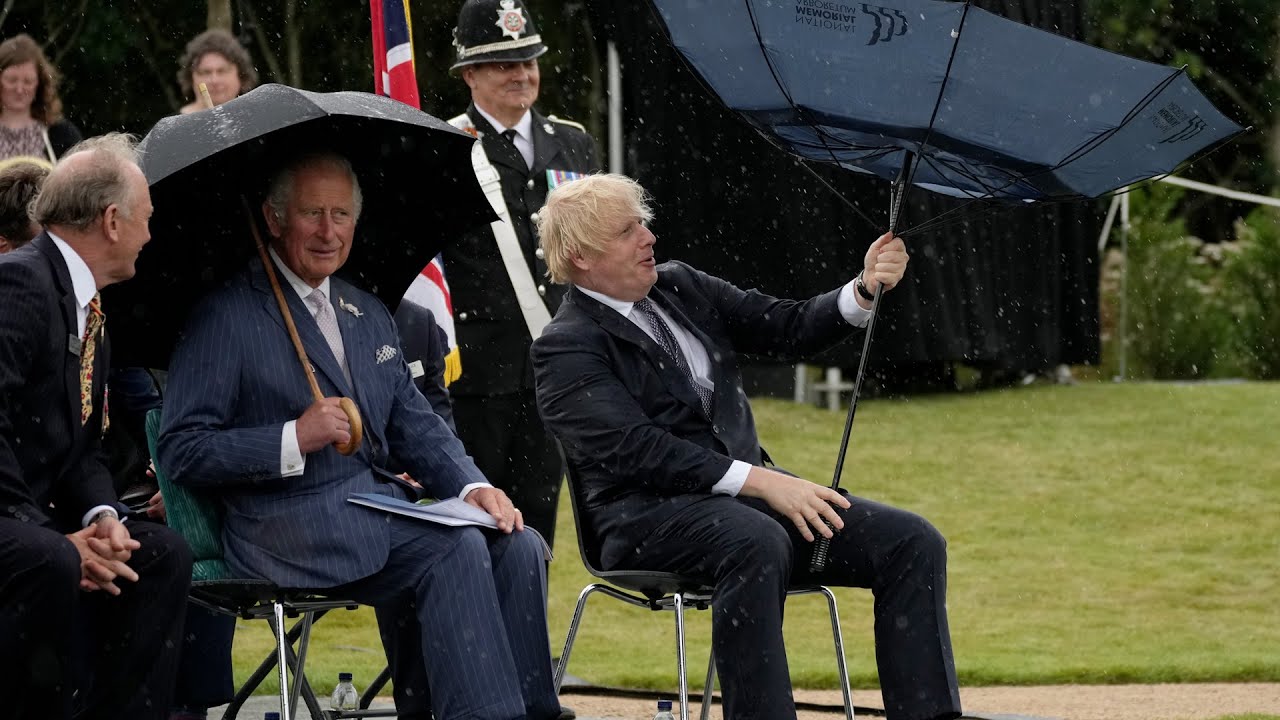 Четвртак, 29. јула 2021. у Алревасу, Стафордшир, Борис Јохнсон открива спомен обележје британским полицајцима погинулим на дужности, када је почела киша. Седећи поред принца Чарлса, Британски премијер је тада хтео да отвори свој кишобран, али је наишао на одређене потешкоће.