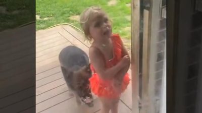 Девојчица у башти једне куће, плаче тражећи од оца пажњу. Отац има решење да одмах смири ћерку.