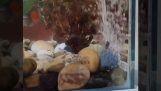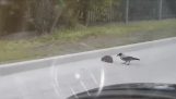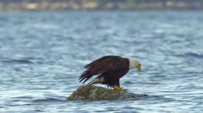 Орао хвата рак у кљун покушавајући да га поједе. Али рак ће се одупрети и побећи, попевши се на главу орла.