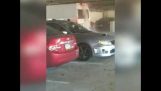 Возач шлепера покушава да заустави ваљани аутомобил.