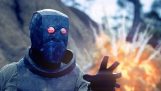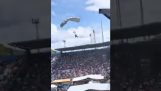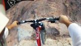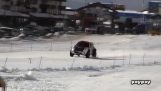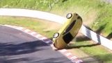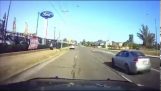 Човек губи контролу над својим мотоциклом и падне на оточић, где се лансира. За његову срећу, пао без тешког повреде на хаубици камиона.