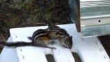 Мачка и пас гледају веверицу испред телевизора.