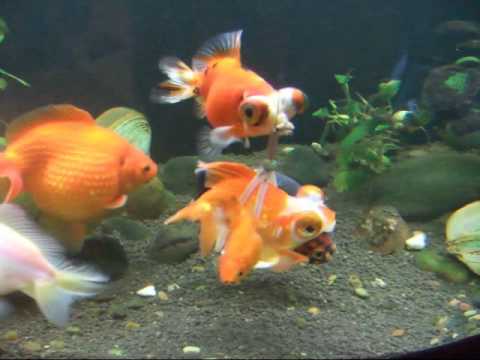 Ova zlatna ribica ima problem za održavanje plovnosti u njegovom telu i tone neprekidno u dnu akvarijuma. Vlasnik je napravio specijalni uređaj koji vam pomaže da izdrži težinu i lako se pomera.
