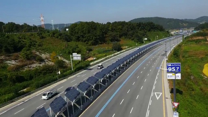 Između Daejeon i Sejong grad u Južnoj Koreji, Izgradio je jedinstvena biciklistička staza. Trag se nalazi između dve trake od autoputa i u obliku tunel čiji krov pokriven solarni paneli. Kolekcionari, Osim napajanje strujom zaštite biciklista od sunca i kiše.