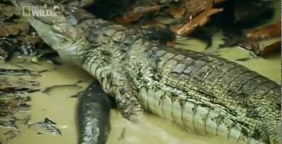 Izvod iz National Geographic dokumentarni film gde elektriиnih jegulja brane protiv krokodeilwn. Електрична јегуља може да произведе јак удар на 600 волт.