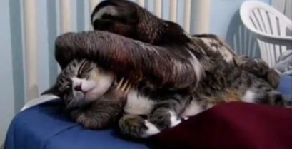 Jedan orangutan krade majicu posetioca u u zoološkom u Filipinima i pokušaja da se nose.