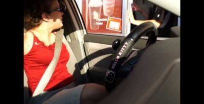 Tisha je Shelton, Jedan je Amerikanac, rođen bez ruku, pokazuju, da vozi posebno dizajniran automatsko naručio hranu iz restorana fast fud.