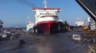 Brodu za uništenje, stiže na neuobičajen način u luci.