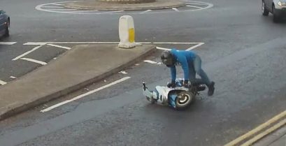 Vrlo duhovito scena na putu Engleske, Gde je čovek stavlja na razmažena njegov skuter.