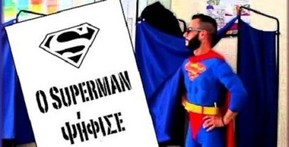 Само један суперхерој сада може спасити ову земљу... У улози супермена, Vasilis Saltiris.
