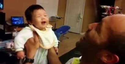 Беба од 3 месеца се први пут смеје са својим татом, Ko se uzbudi.