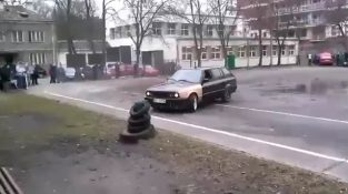 Stari BMW upravljački program koji u Poljskoj plutati u otvorenom prostoru. Iako je temperatura problem će uništiti motor njegovog auta, koji eksplodira kada stavlja obrnuti.