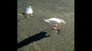 U novom keju, Wales, čovek zabaviti dok učenje u galeb za ples, tokom pauze na poslu. Кад му каже 'Играј', птица почиње брзо да лупка ногама [...]