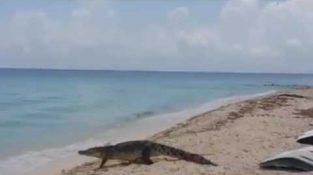 Krokodil šokira kupače na plaži popularnog meksički dok ležerno hodate preko peska i u kul vode.