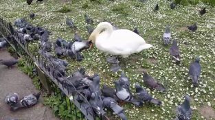 Један од Краљичине Сванс је виђен брање и пуне махања голубове у Регентс Парк, или је то Јурассиц Парк ИИИ?