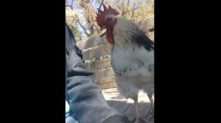Петао позива све више и више умиљат него човека, повлачењем руку са својим кљуном.