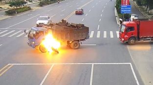 Субота, 6. маја у Нанцхангу у Кини, човек вози мотоцикл када се сударио са камионом, пада на резервоара. У судару одмах запалила уље, тетура у пламену [...]